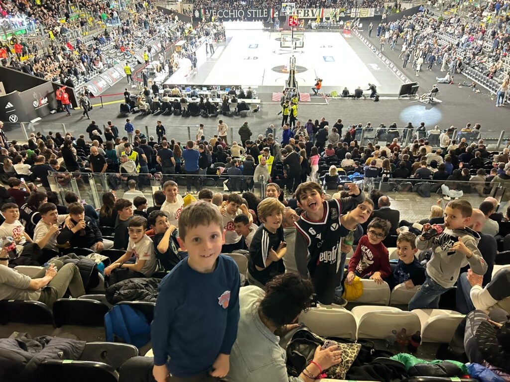 Al suono della sirena e tra la nebbia, pronti a ripartire direzione Bologna per la partita di serie A tra Virtus e Trieste. Ed e’ proprio qui che la magia si avvera, gli occhi dei bambini si illuminano una volta varcate le porte del palazzetto, la ricerca del posto vicino al proprio compagno del cuore per condividere e non perdersi neanche un secondo di questa giornata che difficilmente dimenticheranno. Tra tifo musica, schiacciate e triple volevamo raccontare questo mare di emozioni, certi che questa bellissima opportunità sia stato un modo per conoscere e vedere da vicino e in prima persona nuove e diverse realtà, dove la palla a spicchi si respira in ogni angolo, dove il basket e’ veramente cultura.